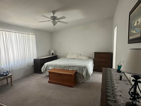 Charming 3-bedroom, 2-bath home situated on a corner lot, meticulously maintained. This home features a newer roof and HVAC system. Enjoy a spacious living room with vaulted ceilings, a large kitchen with a breakfast bar and dining area, and an oversized mudroom complete with a wash sink. You'll love the large master suite with separate soaker tub and dual vanities. Outside, you'll find a deck, multiple storage sheds for ample storage, and a 2-car carport. The property is fully fenced and benefits from King Hill Irrigation. Located just a short walk from Snake River in a peaceful neighborhood.