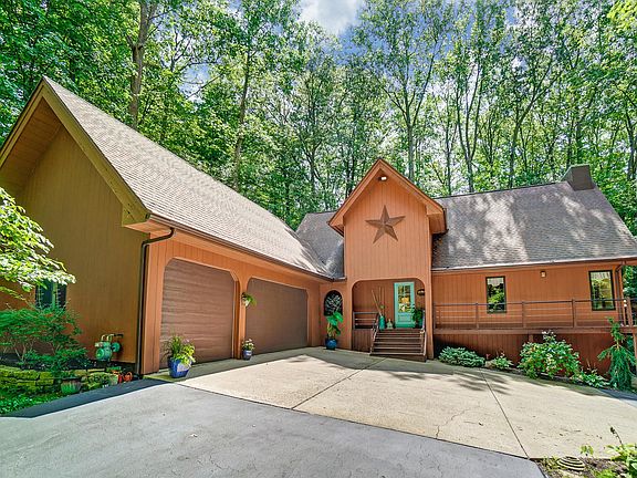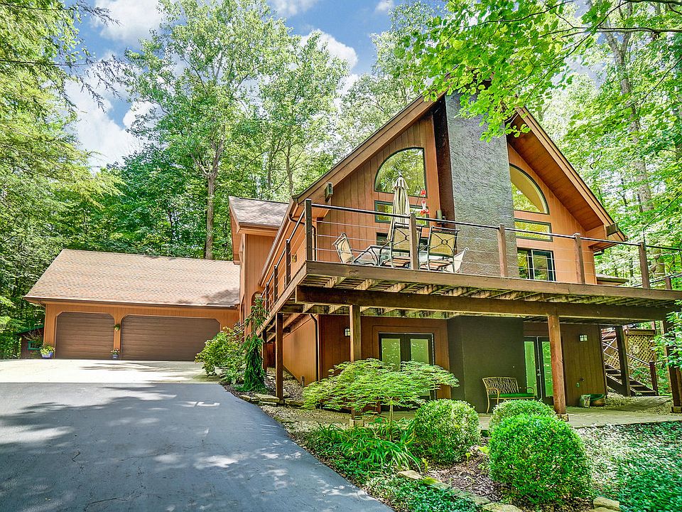 Nestled on a hill among the trees you'll find this light and airy home that is NOT your traditional A-frame! The great room here lives up to its name with 6'' hand-scraped solid maple flooring and 20+ foot cathedral ceilings, offering amazing views and an open floor plan to the dining room and kitchen. The kitchen boasts custom cabinets, granite countertops and stainless appliances. Add a spacious screened in porch, 3 bedrooms, 3 full baths, master suite with walk-in closet, open air office space plus more custom cabinetry and wet bar in the partially finished walkout basement. Don't forget outside - a 3+ car garage with walkup attic, large ''she''-shed, and beautiful perennials. No wonder this home was featured on the WASSO Master Gardener Tour! Square footage includes walkout basement