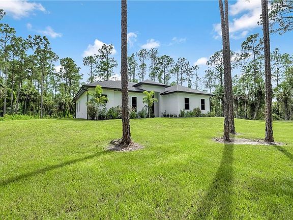 Amazing home built in a 2.73 acres rare 100% upland lot, in the area of Golden Gate Estates, features 3 bedrooms + Den, 2.5 bath, & 2 car garage! Living area of 1,900 sq.ft and a grand total of 2,627 sq.ft. Upgrades include wood plank porcelain tile throughout, crown molding, quartz countertops, stainless steel appliances, and solid wood cabinets! The living room and master suite boast tray ceilings. Master wing features an oversized bedroom, 2 spacious Closets, double vanity, and glass door enclosed shower. The outside of this home will not disappoint either with a Summer Kitchen and a beautiful landscape, auto sprinkler system, and a large lanai. Impact resistant windows/doors! *Photos are from a previous same model home.
