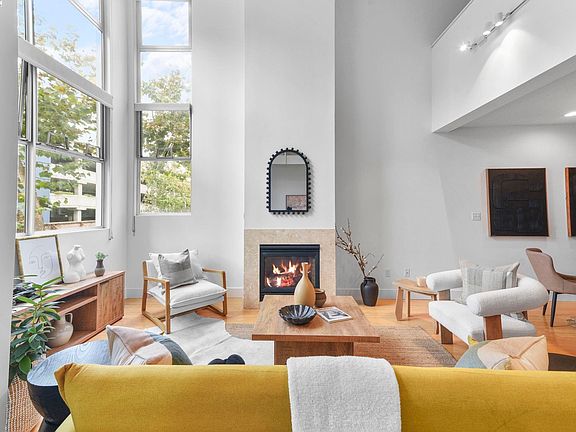 Perched above street level in the centrally-located Key Route Lofts building, this second-floor loft condo offers scale, light, and livability. The vibe is more art gallery than apartment thanks to soaring vaulted ceilings, a wall of windows providing natural light, a gas fireplace, and an open floor plan that adapts to your lifestyle. The main level has bamboo flooring and the loft bedroom upstairs has new carpet. The 1-car garage parking, in-unit laundry, and sizable private balcony make this home a must-see. The kitchen offers newer stainless steel appliances and a sizable breakfast bar. The first floor offers flex space for a home office, your yoga mat or Peloton, or a reading nook. A spiral staircase connects both levels—upstairs, the bedroom loft includes a catwalk mezzanine perfect for storage or showcasing plants, art, or your next fashion show. An ensuite bath with shower over tub completes this level. This is that rare find: serene and tranquil inside, while dining, shopping, and transit options sit just outside your door. Bay Street, Target, Home Depot, MacArthur BART, I-580, 880, Highway 24, the Bay, and Aquatic Park are all minutes away. Celebrate fall with a new home in Emeryville!