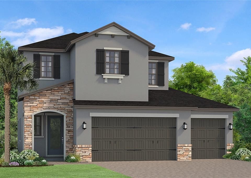 One or more photo(s) has been virtually staged. Under Construction. This home features an elegant entry into the foyer with a grand staircase leading to the second floor’s open balcony. Upstairs, the loft is centrally located near the secondary bedrooms and oversized laundry room for convenience. The owner’s suite is situated along the backside of the home and boasts many windows, filling the room with natural sunlight. After enjoying a morning cup of coffee from the privacy of your backyard lanai, meet up with friends at the courts for a quick game of basketball. Spend the afternoon lounging by the pool or take the dog for a walk through numerous sun-dappled trails. Indulge in a quick card game at the clubhouse with fellow residents, or prepare a delicious dinner in your gourmet-inspired kitchen. Each day at Estancia offers endless opportunities for exploration and excitement. Interior photos are different from the actual model disclosed being built.