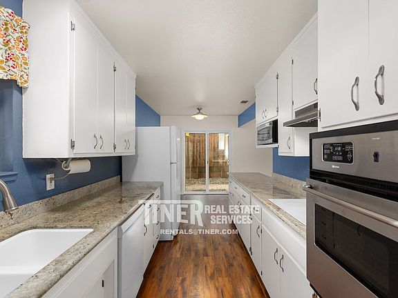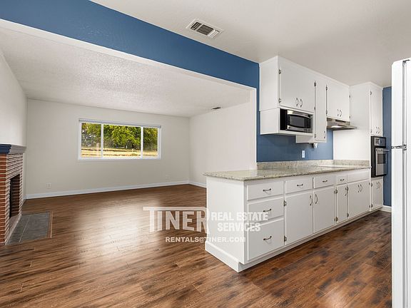 This upgraded 3-bedroom, 1-bath property with a 2-car garage offers turnkey comfort and a highly functional layout. The open living room features a decorative-only (non-operable) fireplace and flows seamlessly into the refreshed kitchencomplete with an oven, microwave, flat-top range, dishwasher, refrigerator, and generous counter and cabinet space. The adjacent dining area provides direct access to the patio and backyard for easy indoor/outdoor living.