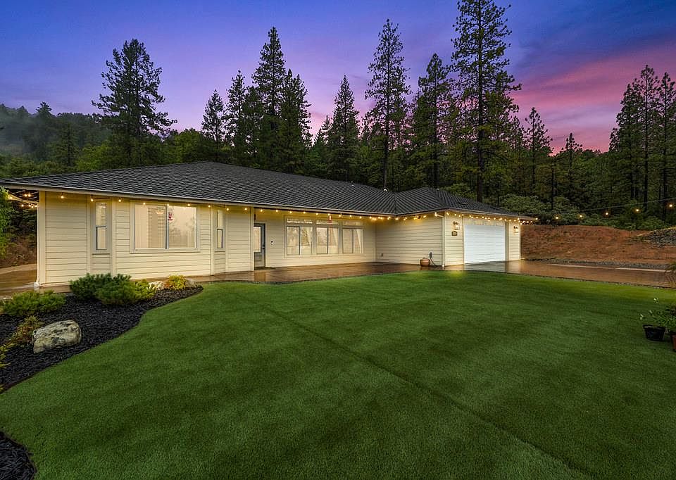 Top of the World Views! This custom Home is only four years young, but feels brand new. Totally Awesome newer custom home on 2.5 acres. Single Level, with tons of light, upgraded finishes with all the frills. High speed CalNet internet, Large open Kitchen, Dining, Family area. 6 burner gas range, granite slab and Luxury plank vinyl floors.Solid stained interior doors with exposed knots. Huge master suite with a Bay window, walk in closet and custom built-in organizers. The guest bath has a 6' extra deep soaking tub. The garage is a dream, oversized, fully finished and a bank of custom cabinets. The outside is landscaped with beauty and ease of maintenance in mind, it features stamped and stained concrete and a wide, private asphalt driveway. The 50 year hip roof has high-end extra thick shingles. The home is very private, but is only 7 minutes to the freeway. This home was built with with fire safety in mind, From the fire resistant landscape and two inch onsite personal hydrant, to the Class A fire retardant roof, Interior sprinklers, stucco and Hardi-plank cement siding. This property qualifies for the Fair Plan Home Hardening discount rate. The electric panel is generator ready and wired for a home charging station. Plus, There's Plenty of flat ground and room for a pool.