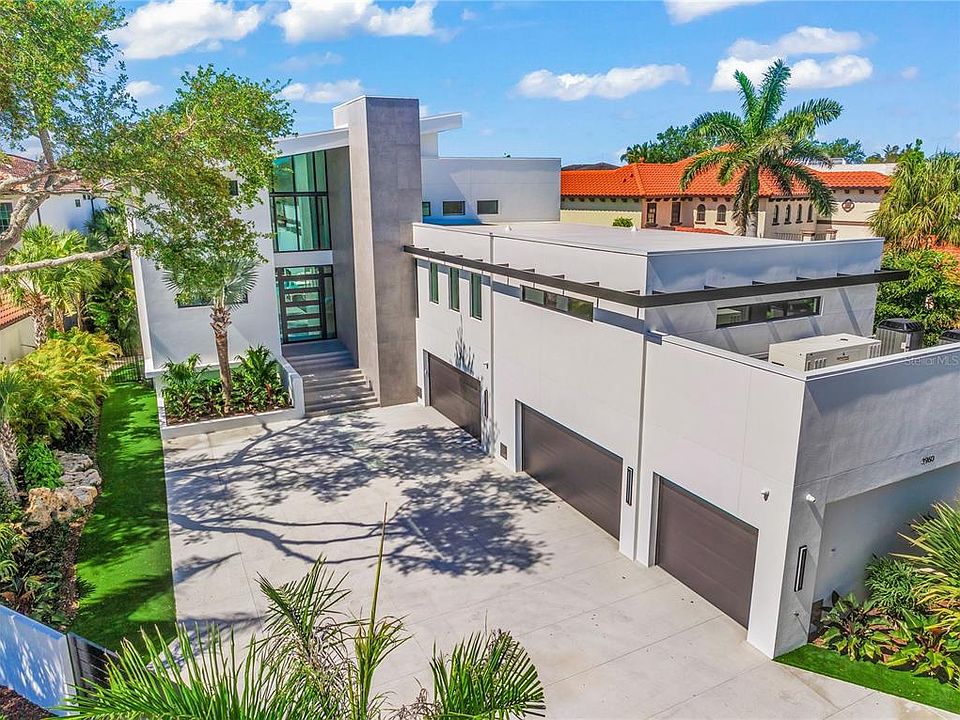Nestled within the coveted north end of Siesta Key, this extraordinary residence boasts a blend of modern & contemporary elegance. Situated on an expansive lot spanning approximately 0.45 acres along the scenic Roberts Point Rd, the home welcomes you through private gates into your own secluded sanctuary. Possessing a spacious driveway with garages accommodating up to 7 vehicles (5-car garage with 2 car lifts), the magnificence of this home is evident from the moment you arrive. Embellished with lavish landscaping & showcasing a grand entrance featuring a striking 6-foot by 12-foot pivotal door, this home sets a tone of unparalleled luxury. Step inside to discover a blend of state-of-the-art technology and top-of-the-line kitchen appliances catering to the discerning chef & family alike. Enjoy breathtaking views of Nettie Bayou, providing access to exceptional boating waters and direct routes to Sarasota Bay and the Gulf of Mexico. Conveniently located near renowned beaches such as Siesta Key Beach, Lido Beach & the Venice jetty - this luxurious residence ensures easy access to waterfront bliss. Designed by DSDG (Mark Sultana) Architects, the open-concept layout on the main floor seamlessly integrates the kitchen, dining area, family room, movie room, butler's pantry, additional pantry with a refrigerator, office, & half bath. Expansive sliders extend the living space to an outdoor oasis featuring a kitchen, fire pit, & dining area with electric roll-down screened enclosures & a pool bath for ultimate comfort. The stunning pool/spa area, enhanced with fire bowls offering a perfect retreat for relaxation & entertainment. Ascending to the mid-level you will discover a private guest room with an en suite & a private office/yoga room. Continue to the upper floor, where the sprawling primary suite awaits, featuring his & her spacious walk-in closets, a coffee bar, and a luxurious master bathroom with a water room. Spectacular water views & a large private balcony enhance the allure of the primary suite, while the second & third bedrooms on this level offer equally stunning views, spacious accommodations, en suite and privacy. Convenience is key with a laundry room located on the upper floor, equipped with all the amenities for storage & washing. An additional bonus area/gym on the garage level offers panoramic views of the car lifts and vehicles, enclosed with glass & featuring a half bath & mini split a/c unit. The home is equipped with an elevator & a 60k Generac generator with a 1,000 gallon propane tank to run the entire home down to landscape lightning through any power outage with ease & comfort. The home is adorned with exquisite lighting fixtures throughout, with a beautifully designed wine area greeting you upon entry. Additional enclosures ensure privacy & security for the side & backyard areas. A 16,000lb boat lift with a dock adds to the beauty, inviting you to bring your boat & explore the waters at your leisure. Enjoy leisurely walks through the serene neighborhood, with minimal traffic and panoramic water views. Shell Beach, just a short distance across Higel Ave, offers a peaceful escape with its pristine pure white sand & lovely sunsets. Experience the charm of the village with its exceptional restaurants, shops, & the renowned Siesta Key Beach, easily accessible by golf cart, bicycle, or car. We eagerly await the opportunity to introduce you to this extraordinary home & help you make it your own. Turnkey is an option! Bedroom Closet Type: Walk-in Closet (Primary Bedroom).