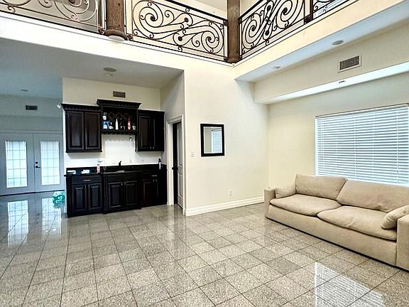 Cantera pillarsGranite countertopsTheater roomExtra large master bedroomWet barBeautiful iron railingsCustom built cabinetry
