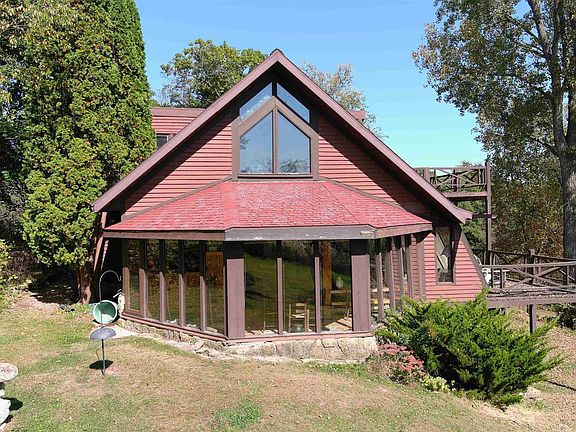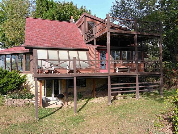Sounds of Silence! Unmatched intimate hide away perfectly placed on 20 acres in the immensely scenic hillsides of Wyoming township. The home was built w/ an abundance of character with exposed wood, ceramic and marble tile, teal green swan stone sink and some upcycled materials like the bowling alley countertop and brick pavers from Huff St Winona MN around the built in reproduction vintage oven. The passive solar aspect offers an abundance of windows that also brings in the long range views. The Sundrenched dining room has unique planters. The sun-filled sleeping/studio/rec room loft overlooks the living area. The 2 bdrms share a full bath & primary bdrm has a huge deck attached. The walk out LL has rec rm w/ free standing stove, office, full bath w/ unique shower, storage & work shop.