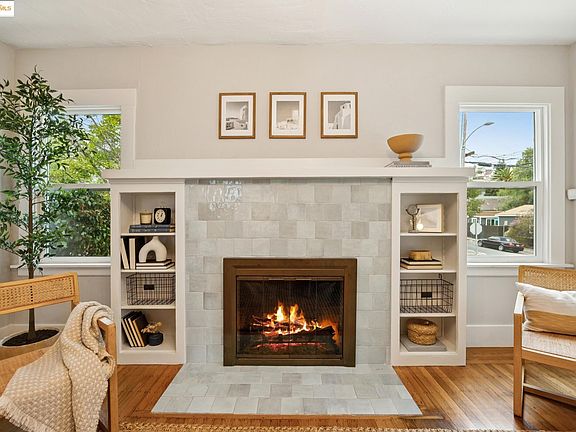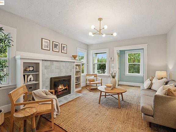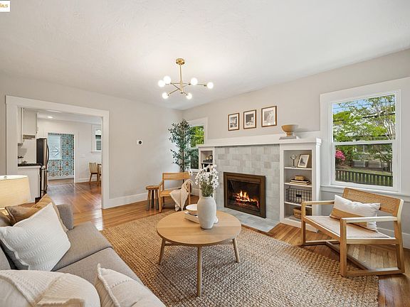 The Sweetest Little Jewel Box in Redwood Heights! Welcome to this utterly adorable bungalow that’s practically bursting with personality. Nestled in a quiet, storybook corner of Redwood Heights, this home is a true charm bomb; whimsical, warm & full of delightful surprises. Inside you’ll find hardwood floors, a cozy living room with a blue-tiled gas fireplace, and a cheerful eat-in kitchen with shaker cabinets, a brand new fridge and dishwasher, penny-round blue tile backsplash, and streams of natural light. Two bedrooms with generous closets and a clawfoot tub bathroom round out the main floor. The colorful laundry room opens to a sunny back patio where you can garden, lounge or throw a backyard BBQ. Accessed from the front of the home, the 381sf basement (with great ceiling height) is like a blank canvas for your imagination: storage, game room or even the potential for a dreamy 3rd bedroom with the addition of an internal staircase. Plus the finished detached garage offers even more versatility as an art studio, home office or gym. Upgrades include central AC & heat, new tankless gas water heater, new french drain system and seismic shearwall panels. Tucked in a charming, serene pocket of Redwood Heights, yet just moments from Hwy 13 and 580.