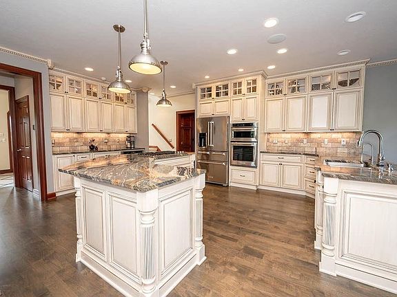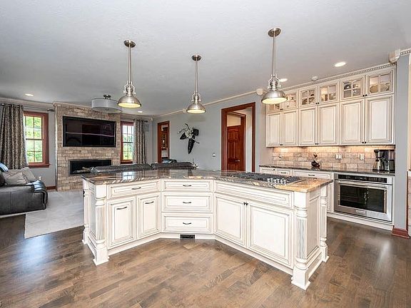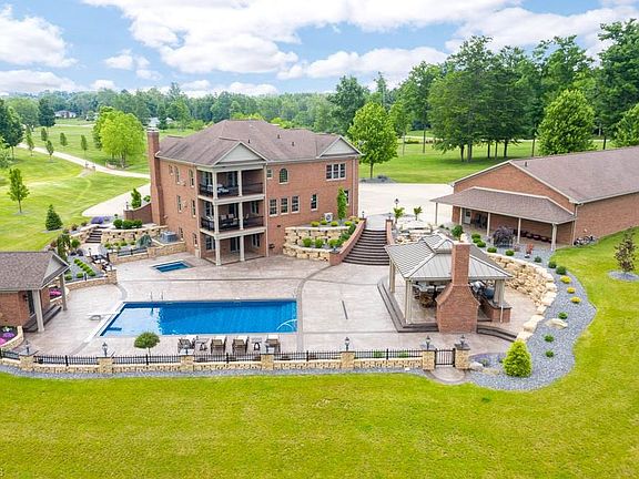 Majestic Georgian Manor sited on a spectacular private park like 29 Acres offering privacy, tranquil enjoyment and wooded views. State of the art quality finishes inside and out and decorated to perfection. Highlights of this home include a magnificent marble foyer, open staircase, soaring ceilings open to the elegant living room w/fireplace and formal dining w/hardwood flooring & fireplace. Design award winning Amish built kitchen features massive center island, abundant cabinets, pantry, granite, stainless stl appliances & heated wood flooring. Eating area opens to the great room with fireplace, wet bar & access to covered patio. First fl laundry & stunning half bath complete this floor. Amazing master suite w/fireplace, balcony, luxurious bath w/heated floors & walk-in closet. 3 add'l generous sized bedrooms offering private ensuite & jack & jill baths w/separate sink areas & walk-in closets. Amazing lower level offers full kitchen, leather granite, custom Amish cabinetry, stainless stl appliances. Spacious living/entertaining area offers custom built-ins, full bath, sauna & exercise room. Resort living continues to the walk out inground salt water pool, hot tub, breathtaking waterfall, pool house & out door kitchen featuring concrete counter, fridge, sink, warming drawer, ice chest, gas grill & wood fired pizza oven. Heated/air conditioned garages. 40 X 80 garage features 5 overhead doors, full bath & laundry hook up. This "Smart" house is Simply Stunning! #29acres #12car