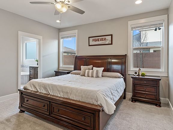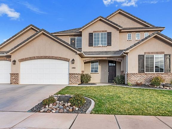 Beautiful home with quality features throughout including an open entry, quartz countertops, white kitchen cabinetry, wood flooring, custom entertainment center, and more. Finished landscaping includes in-ground trampoline, gas fire pit, and Lifetime storage shed. Located in Washington Fields only a few blocks from the new Crimson Cliffs Middle School and High School.