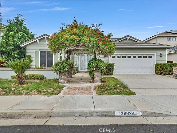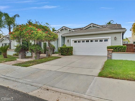 Nestled in the highly desirable Vintage Reserve community of Murrieta, this beautifully updated single-story home offers 3 bedrooms, 2 bathrooms, and approx. 2,025 sq ft of living space on a well-appointed 6,098 sq ft lot. From the moment you arrive, its curb appeal shines with a lush garden arbor entry, charming courtyard, and custom walkways. Inside, a formal entry welcomes you with abundant natural light and graceful arched doorways throughout. The spacious family room is anchored by a tile fireplace with a built-in TV cabinet and flows seamlessly into the dining area, where sliding glass doors open to serene backyard views. The gourmet kitchen is a centerpiece, featuring a custom hood vent, expansive cabinetry with decorative open shelving, beveled granite countertops, a large island with breakfast bar, and upgraded stainless steel appliances including a French door refrigerator, double ovens, and dishwasher. The master suite is a private retreat, complete with sliding door access to a side patio, a walk-in closet, and a spa-inspired bath with dual sinks, a designer-tiled walk-in shower, and a soaking tub framed in stylish tile accents. Two additional bedrooms are generously sized, and the hall bath offers double sinks and a shower-in-tub. The laundry room includes cabinetry and a utility sink with pull-out faucet for convenience. Interior upgrades include fresh paint, ceramic tile flooring with new carpet in bedrooms, plantation shutters and blinds, recessed lighting, upgraded ceiling fans, new black matte bath fixtures, and a new AC unit. Best of all, the home comes with solar panels and a fully paid Tesla wall mount, providing long-term energy savings and efficiency. Outdoors, the backyard is an entertainer’s dream, highlighted by an expansive wood lattice patio cover, custom stamped concrete, tranquil waterfall feature, manicured lawn, stucco-and-brick planters with lighting, and mature trees and shrubs. Located in one of Murrieta’s most sought-after neighborhoods, you’ll enjoy close proximity to top rated schools, parks, shopping, dining, and easy freeway access.