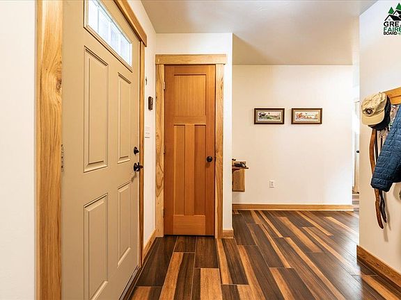 Discover this unique, super-insulated home in Ester, offering a perfect blend of efficiency, comfort, and Alaskan charm. Situated on 2.5 acres across from Cripple Creek Road, this thoughtfully designed three-bedroom, two-bath home is built to withstand the harshest winters while keeping energy costs low. Unlike traditional stick-built homes, this property features remote wall construction, Greatland Tilt/Turn triple-pane windows with insulated fiberglass frames, and a high-efficiency low-mass condensing boiler with in-floor radiant heat. For those extra-cold months, a catalytic wood-burning stove provides ample warmth, capable of heating the entire home. Enjoy durable finishes, including tile flooring on the first level and second-floor bathroom, plus Kahrs engineered wood flooring on the upper level. The exterior is designed for low maintenance, featuring a rock lawn made from crushed mine tailings on Typar filter fabric. Additional highlights include: -Detached oversized two-car garage (built in 2016) with extra storage -Three wood sheds storing nearly 4 cords of wood -12’ x 16’ south-facing deck—perfect for relaxing or entertaining -Two raised garden beds (4’ x 14’) for growing your own produce -Convenient location—just a short drive to Fairbanks on a well-maintained year-round road This is the ideal home for those seeking energy efficiency, privacy, and a connection to nature—all while being close to town.*ABSOLUTELY NO SHOES IN THE HOUSE* Virtual Tour Here: https://my.matterport.com/show/?m=hbRSTBLVXHG