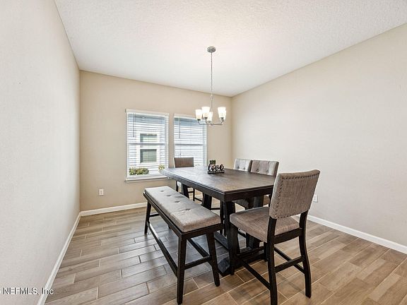 Welcome home to this nearly new 4 bedroom, 3 bath home with a 3 car garage located on a cul de sac within the Oakleaf Plantation area. This home boasts features such as wood look tile flooring leading into an open floor plan with a large kitchen, stainless steel appliances, solid surface counters, breakfast bar, island and plenty of cabinets. The bedrooms are a split plan and the 4th bedroom has an en suite bathroom. To enjoy the Florida lifestyle, the lanai is screened and the backyard is fenced. The neighborhood has a resort style pool, pickleball courts, basketball court, a well equipped gym and playground area. The home is conveniently located near shopping and restaurants, Eagle Landing Golf Course and Oakleaf Town Center.