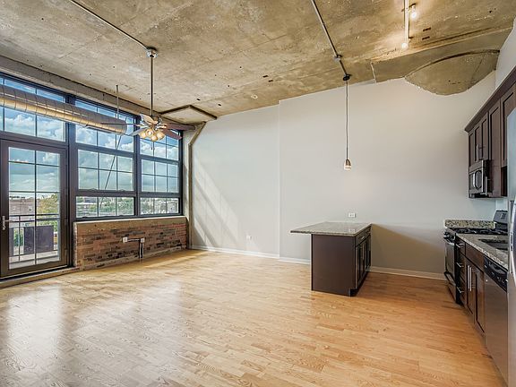 Welcome Home! This sun-splashed & freshly painted 2 bedroom loft condo in the Chicago-landmark Shoemaker Lofts building in Avondale awaits you! Featuring 12' tall ceilings, exposed brick, and original concrete pillars, you'll love the natural light that pours in from the private balcony windows. The open kitchen features dark cabinets, light colored granite counters, and all stainless steel appliances, while the huge living area invites your creative decorating ideas. Both bedrooms are ample sized and feature large closets, laundry is in-unit, and the large bathroom showcases oversized tub and double vanity sinks. The building features door person, exercise room, and green roof with a huge shared rooftop deck with amazing city views! Plus, there's deeded heated garage parking included as well. Come see it today!