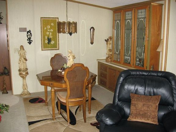 Come see the only home in the park with a pool. That's right, a beautiful screened in solar heated, salt chlorinated, in-ground pool with jets. This well maintained home has a spacious living room with a wood burning fireplace. This leads to the dining area and the kitchen. Kitchen has an island stove and breakfast bar in the center and overlooks the family room. From there you go to the Florida room that looks out to the pool and deck. The large Master Suite includes a garden spa tub with jets, dual sinks and a separate shower. There are more rooms past the 1 car garage for storage or a den/3rd bedroom. There is detached storage shed in the back of the house. The gardens around the house have pineapple plants, banana trees and bougainvillea. Convenient to entertainment and shopping. Come see it today.