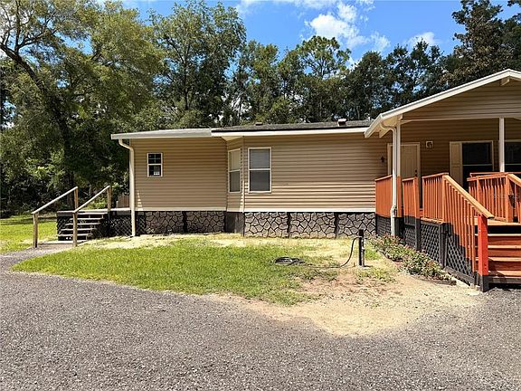 Welcome to this beautifully remodeled home in the highly sought-after Three Rivers Estates community. The Owner recently enclosed the back-porch to be an additional room, it is AIR-CONDITIONED, and can be used as a 3rd BEDROOM, or IN-LAW SUITE. Situated on nearly two ACRES, this charming 2-bedroom, 2-bathroom residence offers a thoughtfully designed living space with NO CARPET throughout. Upon entering, you’ll be welcomed by a spacious family room featuring a striking custom slate tile feature wall, setting a warm and inviting ambiance. The upgraded kitchen boasts modern appliances, ample cabinetry, and a well-planned layout that makes cooking a pleasure. Both bathrooms have been stylishly updated with tile finishes, and the flooring throughout the home enhances its modern appeal. The master bedroom is an oversized suite with a huge walk-in closet, offering plenty of space and comfort. The guest bedroom is equally impressive, featuring its own large walk-in closet and enough space to serve as a true second master suite. As you make your way through the door in the kitchen you will notice a newly enclosed back porch that has also been air-conditioned! This enclosure has its own private door to exit the property, and an oversized private deck! This room could easily be a 3rd bedroom, In-Law Suite, or office/den! As Step outside and discover an impressive outdoor setup, where the sellers spared no expense on landscaping. The expansive 1.84-acre lot provides plenty of space for outdoor activities. The property also features a NEW water filtration system, and a NEW drain-field. Additional highlights include a POLE BARN covered pavilion with electricity and a septic tank, offering the perfect setup for RV or camper parking. The detached OVERSIZED two-car carport comes with an attached WORKSHOP, and a second shed in the backyard, both equipped with electric service, providing abundant storage and workspace. Located just moments from the MEMBERS-ONLY boat launch and swim area on the Santa Fe River, this home is a dream for outdoor enthusiasts. Don’t miss your chance to own this incredible property in a prime location with PRIVATE access to the Rivers. Schedule your private showing today!