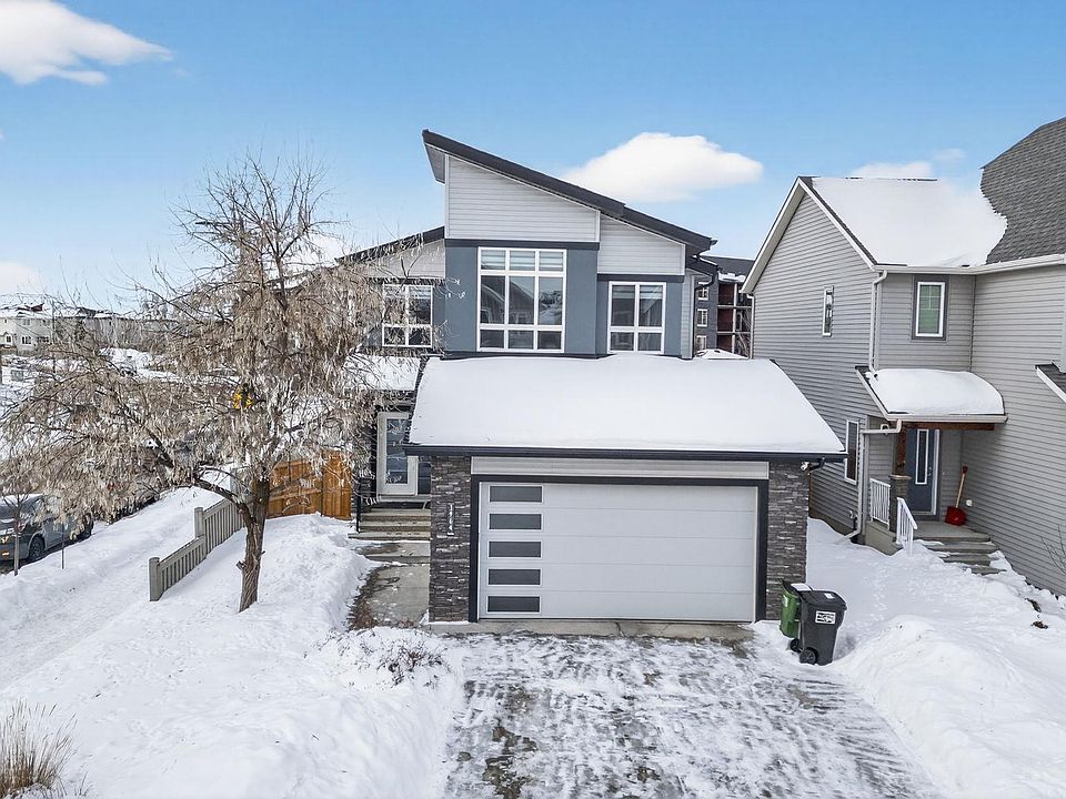 Fully upgraded, modern styling, corner lot, huge yard, finished basement, immaculately maintained, the superlatives are endless for this perfect family home in the booming community of Chappelle. Accent walls throughout in a stunning royal blue color. Flooring is exquisite in a mix of dark and light hardwood. An open concept living room with fire place, dining room and kitchen with an island main floor. With a half bath and a large side pantry that have stand up washer/ dryer and room for storage lead out to the attached garage. Upstairs you will find 2 good sized bedrooms and a full bathroom. Along with a grande master bedroom with a long walk in closet with a beautiful barn door, ensuite with his and hers sinks, standing shower with seat and a jetted tub. The fully finished basement features a massive rec room with bar, full bath, and a den tucked away for quiet work or undisturbed gaming. Out the back door is a deck with lots of space for a bbq and patio furniture along with a good sized yard.