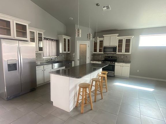 Large Combo/Living/Dining/Kitchen with Large Island. Nice Tile floors, granite counters and farmhouse sink and large pantry.