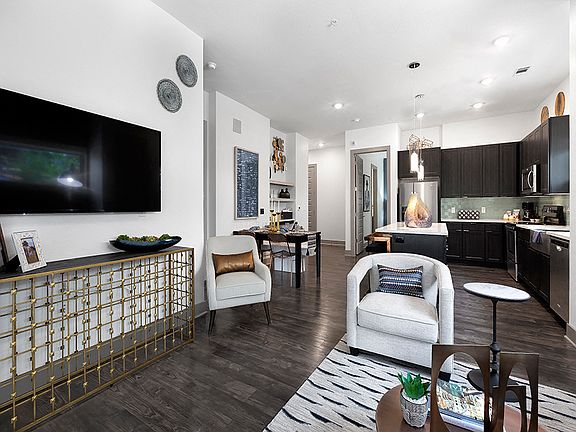- Exterior features: 10-Foot Ceilings, Availability 24 Hours, Barbecue, Bluetooth Surround Sound with Built-In Speakers*, Business Center, Cable/High Speed Internet Available, Coffee Wood-Grain Plank Flooring Throughout, Complimentary Wi-Fi Throughout Amenity Spaces, Conference Room, Curved Shower Curtain Bar*, Designer Tile Kitchen Backsplash, Free Weights, Fully Functional Bike Shop and Storage, Kitchen-Style Bar, Modern Chrome Finishes, On-Site Maintenance, On-Site Management, Package Receiving, Quartz and Granite Countertops, Rentable Storage Spaces, Stainless-Steel Appliances, Sundeck, TV Lounge, Walk-In Spa-Inspired Shower*