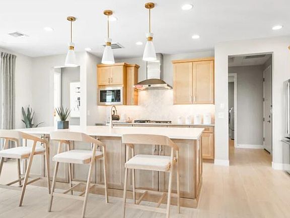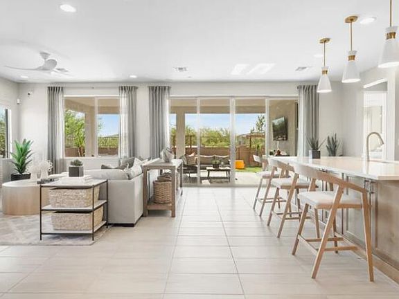 What's Special: Model Leaseback | Large Kitchen Island | Close to Park. Model Home Leaseback - Available Now for April Closing! This model home purchase includes our Model Leaseback Program. Model leaseback terms vary by model home. Please see a Community Sales Manager for additional details. Restrictions may apply. Built by America's Most Trusted Homebuilder. Welcome to the Sunrise at 39640 N Trajen Place in Ovation at Meridian! Welcome home to a bright, open layout where the great room flows seamlessly into the kitchen and casual dining space, with outdoor living just steps away. The tucked-away primary suite offers a spa-inspired bath and generous walk-in closet for your private retreat. MLS#6936999 Toward the front, you'll find a cozy secondary bedroom with a nearby half bath and a second suite with its own bath - perfect for guests. A spacious laundry room and walk-in pantry add everyday convenience. Set against stunning mountain views near Phoenix, Ovation at Meridian is a 55+ resort-style community where neighbors become friends. Enjoy the private clubhouse, shimmering pool, fitness center, and courts for pickleball and tennis. Stroll through the butterfly garden, a certified sanctuary for monarchs, and savor the beauty of desert living every day. Additional Highlights Include: 12' sliding glass door at great room, expanded laundry in place of garage storage, 8' interior doors, and super shower at primary bath.