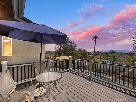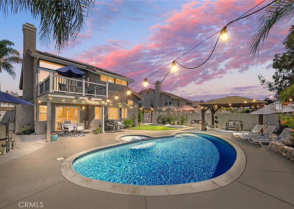 Welcome to your private retreat in the heart of Murrieta! This beautifully updated 4-bedroom, 3-bathroom home offers 2,318 sq ft of thoughtfully designed living space on an expansive 7,500 sq ft lot. With a versatile layout, stylish finishes, and a dream backyard, this home checks every box. Step inside to discover a light-filled open floor plan with elegant porcelain and LVP flooring throughout, granite countertops that seamlessly flow through the kitchen and baths, and updated touches that elevate every corner. The kitchen opens to the living and dining areas, perfect for everyday living and entertaining alike. Upstairs, take in panoramic views of the Temecula Valley from the private balcony—an ideal spot for morning coffee, evening wine or catching the 4th of July fireworks. The primary suite features a spa-like bathroom with dual vanities, a soaking tub, and a separate walk-in shower. But the true showstopper? The entertainer’s backyard. Dive into the sparkling pool, relax under the custom-covered patio, gather around the fire pit, or sway in the hanging hammock beneath string lights. This outdoor space offers the perfect balance of serenity and celebration. This home has been thoughtfully enhanced with modern conveniences and stylish upgrades, including brand new EverLights on the exterior—customizable for every holiday or event and controlled with an app—solar lighting throughout the backyard, new vinyl fencing, and a saltwater pool with newer equipment. Additional highlights include a brand new HVAC system, fruitful citrus trees, a charming gazebo for shaded lounging, Solar panels for energy efficiency, lush landscaping, and a prime location just minutes from shopping, dining, Murrieta’s top-rated schools, and Temecula Wine Country. There’s truly so much more to see— Don’t miss this rare opportunity to own a view home with a resort-style yard in one of Murrieta’s most sought-after neighborhoods!