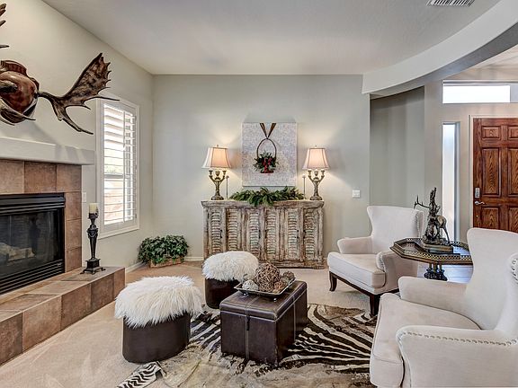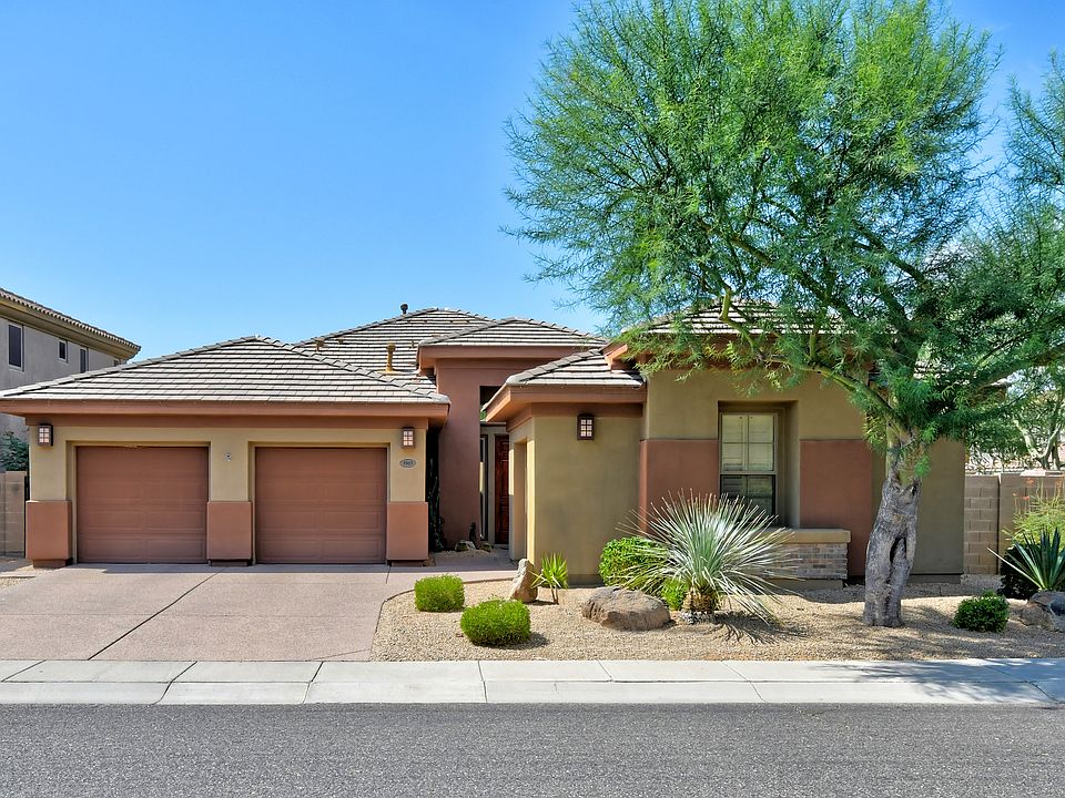 Beautiful 4 bed, 3 bath, 3 car garage home, on desired N/S facing corner lot, in Aviano at Desert Ridge! This single level home won't disappoint w/ chef's kitchen featuring granite counters, plenty of cabinet space, breakfast bar & nook, all opening nicely to the living room, which is perfect for entertaining guests. Home also has add'tl formal living & dining room w/ fireplace, large master suite w/ dual sinks, private toilet room, soaking tub & separate walk-in shower. Backyard oasis w/ sparkling heated pool & water feature, new heater & motor, large covered patio, grassy play area & solar panels. Aviano in Desert Ridge w/ community pool & spa, fitness center, tennis courts, play area, clubhouse, close to shopping, dining & major medical facilities & highways. This won't last long!