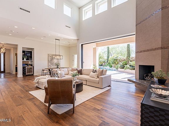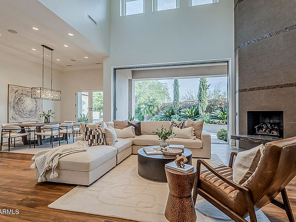 Discover the epitome of luxury living in this exquisite estate, nestled in the prestigious, guard gated enclave of Paradise Reserve. Step inside this soft contemporary masterpiece, to embrace refined luxury with soaring ceilings, contemporary fireplace, an open light & bright floor plan, hardwood floors & designer finishes. Perfect for entertaining, this home features expansive pocket doors that open the living room to the lushly landscaped yard featuring pool & spa with fountains, a built in grill and expansive patios. Perfect for culinary creations, the chefs kitchen features a sub zero refrigerator, wolf range, double islands & custom cabinetry. Retreat to the lavish primary suite, located on the main level, complete with a spa like ensuite, spacious walk in closet & private patio.