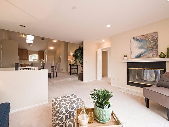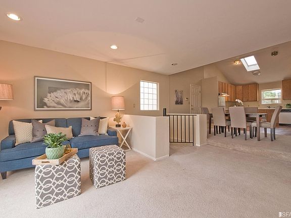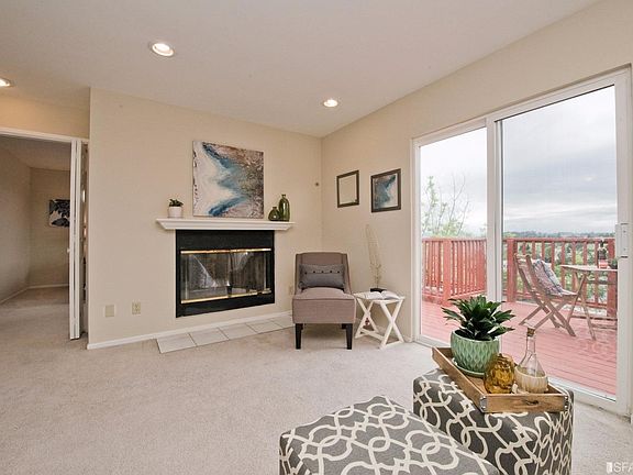 Spacious & bright, 2-story, 3 bed/3bath home with high ceilings and abundant of natural light! Designed for indoor/outdoor living, the master bedroom and living room have access to the stellar sun deck with dreamy views of the surrounding mountains, rolling hills, and city lights. The main floor features the kitchen, dining area, livingroom, master suite, 1 bed, 1 bath. The open kitchen is supplied with a breakfast nook and modern appliances, illuminated by a skylight. Downstairs holds 3rd bedroom, full bath, the family room, laundry room with washer and dryer, and an office/den. Additional features include 2 two-way burning fireplaces and an attached garage. The home has an easy access to FWY 80, restaurants, & shopping.