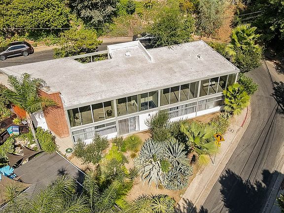 Gorgeous 1966 custom built modern view home by Samuel Y. Dun, architect/designer. This architectural masterpiece dream home is nestled within the renowned Franklin Hills, a highly sought-after area of Los Feliz. This stunning home has style and function, featuring an open floor plan with a flexible living space with spectacular city and hillside views with walls of glass. Accentuating the living room is a beautiful fireplace with a gorgeous marble ledge, enhancing the space is a combination dining/bar area looking out over the magical city lights. The kitchen has sliding doors out to the large courtyard area and opens to the kitchen dining room. The inviting large primary suite boasts views and walls of glass. The primary ¾ bath has dressing area with double closets with built-in. There are an additional two spacious bedrooms each with a wall of closets. The full bath features a separate sink area. Bonus! Downstairs is an additional huge open living space with modern lines, ¾ bath and fireplace! Not included in the square footage. Home has been freshly painted inside and out and has had some updating. Prime location allows easy access to Prospect Studios, hiking trails, the landmark Shakespeare Bridge. Los Feliz Village, Sunset Junction, a community garden, the eateries and shops on Hillhurst. This is a fabulous and a great opportunity to make it your home!