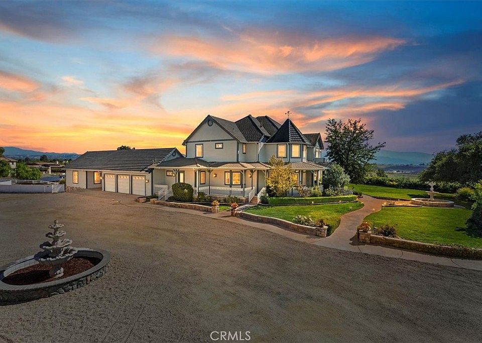 Discover an extraordinary 10,000 sq. ft. estate nestled in the heart of Temecula’s picturesque wine country. This stunning three-story residence is a masterpiece of luxury and comfort, offering unparalleled panoramic views of rolling vineyards and colorful hot air balloons drifting across the morning sky. The property also includes a 500 sq. ft. casita and a 1,750 sq. ft. guest house, perfect for extended family or guests. Main house offers five spacious bedrooms, each with its own fireplace and full bathroom — ideal for enjoying your morning coffee as the fog lifts from the hills. The primary suite is on the main floor, perfectly positioned to capture breathtaking vineyard vistas. The main level also features a gourmet kitchen, elegant living room, formal dining area, and an office/library. A private elevator conveniently services all three floors. The lower level is designed for endless entertainment and relaxation. Enjoy a private movie theater, room for pool table and games and a fully equipped workout room. Step directly outside to an expansive bar and barbecue area that’s perfect for intimate gatherings or celebrations of 100+ guests with separate outdoor restrooms, perfect to host large scale events. For car enthusiasts, the property offers garage parking for seven vehicles, with additional space for expansion or RV parking. There’s also room to create your dream pool, tennis court, or basketball court. This property is a dream come true, unique in every way.