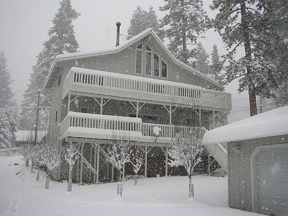 Fabulous Fawnskin home that must be seen to be believed. Many unique features make this 3 bedroom home great for either full-time living or a relaxing part-time getaway. Marvel at the vaulted wood beamed ceiling and the filtered view of the lake from the living/dining room and master bedroom. A family room downstairs along with a kitchenette, 2 bedrooms and 1.5 baths provides extra space for guests. The upper deck provides a wonderful entertainment area for barbecues and lower deck features a newer spa to relax in. Virtually no electric bills from solar panels and southern exposure; seller received a $10.00 rebate in 2017! A power lift on the upper deck provides easy delivery of firewood, groceries, etc. to the main living area. 3,400 square feet of concrete driveway and parking area lead to an 850 square foot, 3+ car garage and workshop. RV hook-up is installed, also. Fawnskin is a short drive to the slopes, shopping, golf, etc., yet provides a serene lifestyle away from traffic.