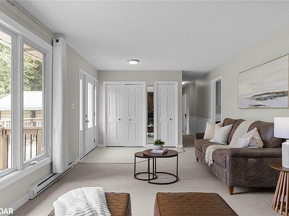 Presenting, 3966 Algoma Ave. This quaint bungalow is nestled just a minute walk from the shimmering water and public dock, and near by FRIDAY HARBOUR. The ideas are endless with this rare listing, sporting **150' frontage and 150' depth**. This property has the potential to build big, or to simply leave it the way it is; thus, able to enjoy the land, the large circular driveway, as well as the detached triple garage/workshop. This well-sized bungalow is just shy of 1500 sq. ft., with an open concept that is just what today's buyer is looking for. Bright, with many windows, this home feels open and spacious. This home displays space and comfort with 3 BED/FULL BATH, a primary bedroom with a walkout to the deck, large/inviting sunroom, and a wood-burning fireplace perfect for winter nights or summer evenings. Just minutes away from Barrie and all shopping amenities.