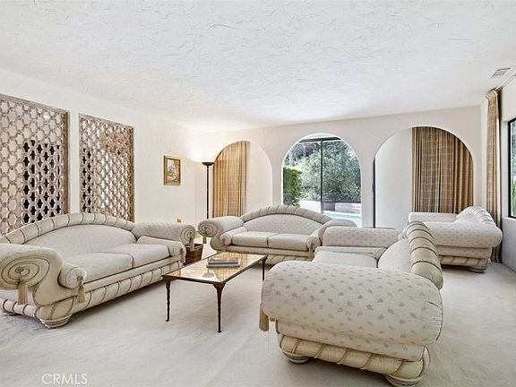 Built in 1970, the home combines authentic craftsmanship with the relaxed sophistication that defines Hope Ranch living. Vaulted wood-beamed ceilings, arched openings, and natural light create an inviting sense of warmth and space. The living room features a striking fireplace and opens to the outdoor terrace, while the formal dining room overlooks the pool and gardens. The kitchen and breakfast nook serve as the home’s comfortable hub and offer an ideal opportunity for modernization or full redesign.