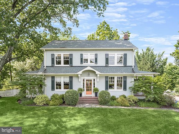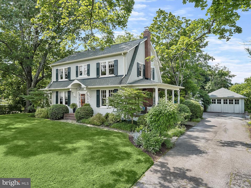 Peace and serenity await at this remarkable home set on a pristine 0.63-acre lot surrounded by trees, creating your own private oasis. Built in 1928, this Dutch Colonial Revival home is part of the Maryland Historical Trust and offers three bedrooms with two full and two half bathrooms. Just minutes from Old Ellicott City’s Main Street, with its variety of shopping, restaurants, bars, and entertainment options, you will love the charm of both this home and its location. Upon arrival, the sweeping front yard lined with trees provides privacy from the street. A gabled entrance portico welcomes you and inside, the foyer showcases glass French doors opening to the living and dining rooms. Adorned with hardwood floors, crown molding, box wainscoting, and a neutral color palette, the foyer sets the tone for the elegance that continues throughout. The living room boasts views of the front and rear yards and an elegant floor-to-ceiling wood-burning fireplace flanked by two French doors leading to the covered side porch, complete with a hanging swing. Enjoy intimate gatherings in the elegant dining room with an adjacent sunroom, perfect for lounging or as an office space, providing panoramic views of the lush yard. The recently redesigned kitchen features gorgeous soapstone counters with a breakfast bar, subway tile backsplash, soft-close cabinets with pull-out drawers, a spice cabinet, two pantries, a farmhouse sink, recessed lighting, a ceiling speaker, a bar nook, and upgraded appliances with gas cooking. Kick your feet up and relax in the family room, with peaceful views of the woods, sliding glass doors to the rear patio, and a wood-burning fireplace with built-in hidden TV storage. A half bathroom completes the main level. Upstairs, the spacious primary bedroom suite spans the entire length of the home and offers an expansive walk-in closet with an adjacent secondary closet and a luxurious bathroom with a frameless walk-in shower, heated floor, and dual-sink vanity. Across the hall, the second bedroom includes a walk-in closet. A third bedroom and an updated shared full bathroom complete the upper level. Downstairs, the lower level features a spacious recreation room for everyone’s activities and hobbies. A large storage room, laundry room, and a half bathroom are also located on the lower level. Outside, the brick patio off the family room is the perfect spot for grilling and al fresco dining. A few steps down, the stone patio features a firepit and views of the fully-fenced rear yard. The shed is a private retreat with electricity, a mini-split heating and cooling system, and WiFi, perfect for a home office. The detached garage accommodates two vehicles with ample storage space. Roof was replaced in 2017. Enjoy the perfect blend of classic charm with modern upgrades this exquisite home has to offer, complete with its tranquil setting.
