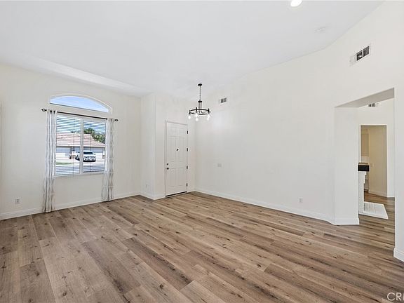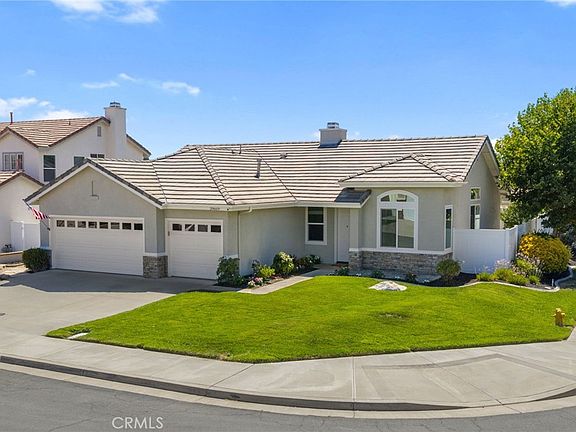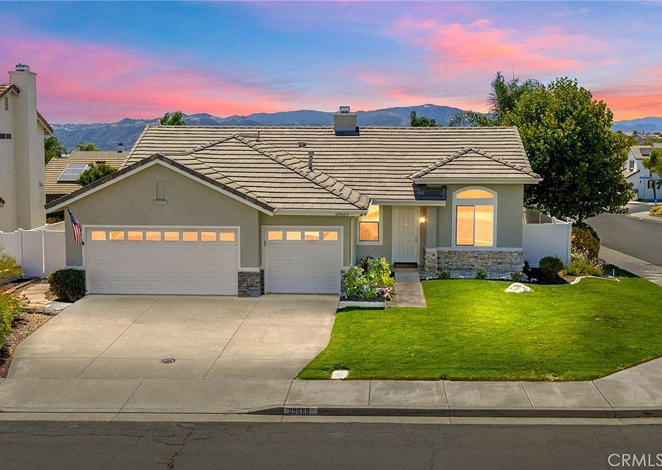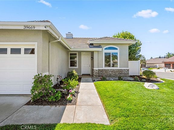 Positioned proudly on a corner lot in Murrieta with low taxes and no HOA, 39669 Candy Apple Way is the ideal property with timeless style. White and woodgrain, this home lives large and is the perfect mix of natural and warm. The moment you step inside you will be captivated by the extensive upgrades. Beautiful wood laminate flooring that runs throughout the main living and traffic areas, high ceilings and natural light fill the living, dining, kitchen and family room. Inviting kitchen with white cabinets, abundant pantry storage, countertop space, newer black stainless appliances, eating area open to family room with brick fireplace. Laundry room with built in cabinetry is so cute you will look forward to doing laundry! Bedrooms are generously sized with plenty of closet space and each with a ceiling fan. Primary bedroom includes walk-in closet, remodeled bath with designer fixtures and huge shower. Hall bathroom is tastefully updated as well. This three bedroom, two bath home offers more than space-it offers intension and functionality. Oversized 3 car garage with abundant attic storage means no gear gets left behind. Outside, a spacious solid covered patio welcomes gatherings, gardening dreams and producing fruit trees.(grapefruit, orange, plum and apricot.) Updates include: newer energy efficient Milgard windows throughout, flooring, carpet, baseboards, designer paint, kitchen appliances, quartz countertop, hot water heater, AC/HVAC, whole house fan, and vinyl fencing. Convenient access to freeways, shopping, parks, and schools is a bonus! This home is gracefully styled and will not last.