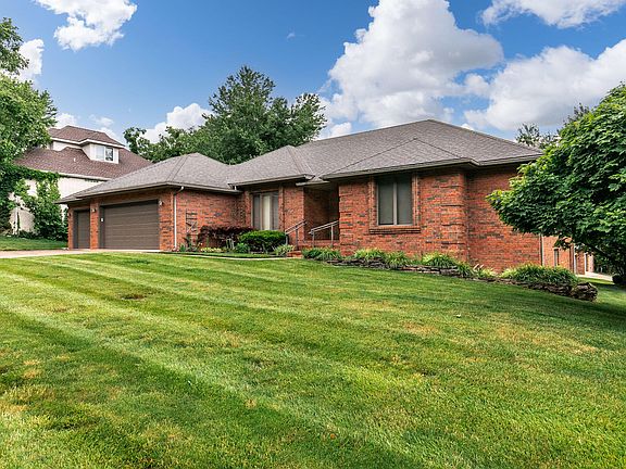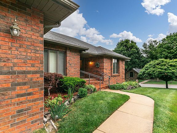 Outstanding all-brick walkout basement home in Oak Knolls South! Situated just seconds from Hwy 65 and Sunshine, this lovingly maintained one-owner home offers 4 bedrooms + 5th non-conforming bedroom, 3.5 baths, 3-car garage, and newer HVAC and roof! Main level offers primary suite, guest bedroom, guest bath, main living room with woodburning fireplace, huge formal dining room, eat-in kitchen, and laundry with half bath. All appliances will stay with the home, including freezer in garage. Quality construction is evident with the thoughtfully placed solid wood built-ins and shelves everywhere you look, and there's even a handy wet bar with beverage cooler off the living room! Head down to the basement where you'll find the 2nd living area with fireplace, wet bar with fridge, storm shelter, and 2 more large bedrooms, both with walk-in closets. One even has an attached extra space that could be a small office or bonus closet/storage. But we're not done yet! There's a 5th non-conforming bedroom (no window) that could also be office space or rec room. Finally, check out the huge John Deere room that was previously used as a woodworking shop. It is ducted for climate control and has an overhead air filter system and double doors to the back yard. Out back, you'll find a lush back yard and a large deck accessible from the living room and primary suite. Located on a beautiful corner lot just seconds to Hwy 65, Walmart Neighborhood Market, Sam's, Harter House supermarket, Dan Kinney Family Center, and plenty of shopping and dining options! This home has been loved over the years, but is ready for its new owners, so come see it today!