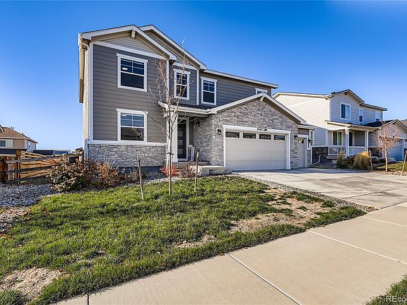 Welcome home to this modern 5-bed, 4-bath Richmond American Hemingway model in The Aurora Highlands! Built in 2022, this bright and open home offers over 4,000 finished sq ft, featuring high ceilings, a spacious kitchen with quartz island, a loft, and a fully finished basement. Situated on a vibrant community with parks and trails, and conveniently located near DIA, shopping, and major commuter routes. As a short sale, this property presents a rare opportunity to own a newer, high-square-footage home below market value. Don’t miss it!