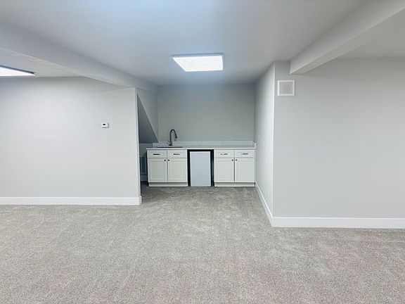 Oversized basement with full bath and kitchenette for entertaining, secondary living room, home theater, or gym.