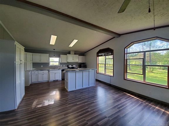Manufactured home with 2 living rooms, fireplace, dining room, open kitchen, 3 bedroom, 2 bath, new roof, new HVAC, appliances were updated in 2016 and new flooring throughout. All located on 10 acres! The property is fenced and has a barn, but the barn does need some work. This home has tons of potential! Bring your livestock and enjoy living in the country with the conveniences of being just off the highway.