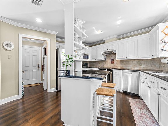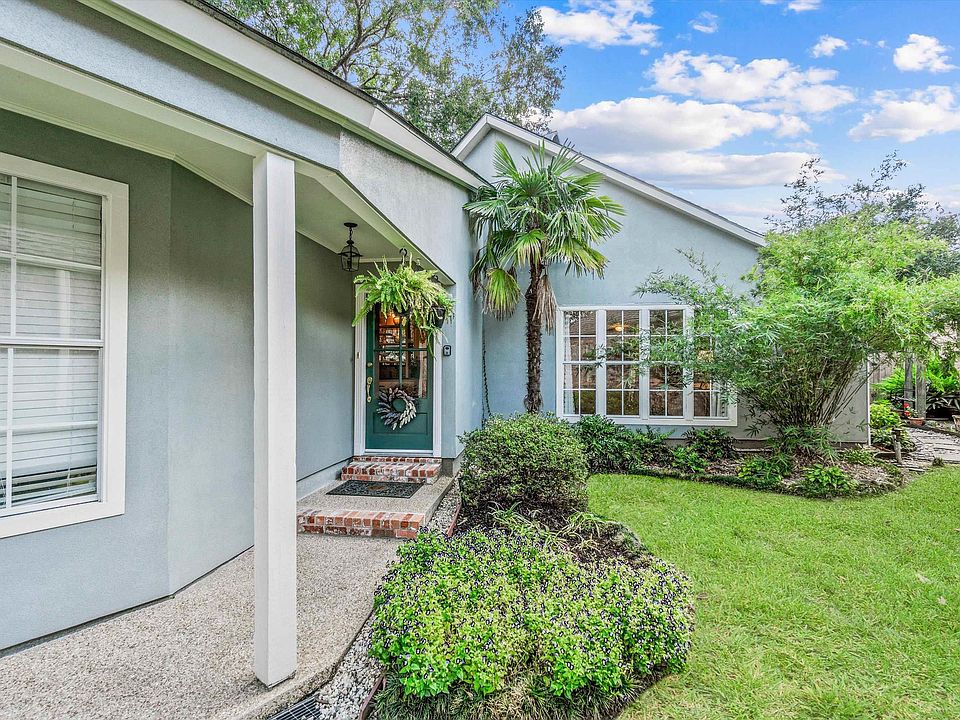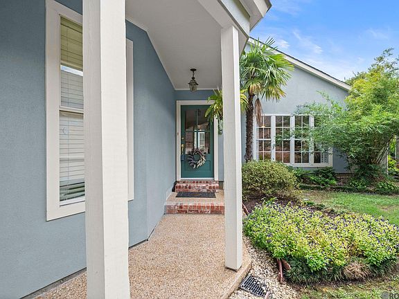 Welcome to this custom-designed 3-bedroom home, tucked away in a small neighborhood just minutes from both interstates. This one-owner home has been well-maintained and has so many extras! Beautiful wood floors, custom millwork, and high ceilings add to the elegance. The kitchen, updated in 2012, includes stainless steel appliances, a Bosch dishwasher, granite countertops, and an island with open shelves and room for seating. A decorative backsplash showcasing a French Quarter scene painted by Louisiana artist Katherine Rutledge adds a unique touch to this beautiful space. An exterior door leads from the kitchen to a side patio facing one of the many common areas in the neighborhood and is a perfect spot for grilling. The nearby laundry room offers cabinets for storage, a second refrigerator, and an LG front-load washer and dryer that will stay with the home. The living and dining areas share one spacious room with a tray ceiling, cozy wood-burning fireplace and an abundance of windows that fill it with natural light. In the master suite, you'll find a custom shower with stone accents, a relaxing jetted tub, and a walk-in closet. A second full bathroom near the other two bedrooms has a shower only. The architect thought of everything…he specifically designed this house so that the morning sun shines in the main living area instead of the bedrooms! A door leads directly from the master bedroom to a small backyard with a brick patio, which is enclosed by a wrought iron fence and offers gated access to another common area maintained by the HOA. Other exterior features include a landscaped yard with an in-ground sprinkler system and French drains and a covered breezeway leading to the front door. The home has a two-car garage with an interior storage room and guest parking is conveniently located nearby. Eligible for 100% financing and located in flood zone X. AC was replaced in 2017. This charming, low-maintenance home is ready for its next owner.