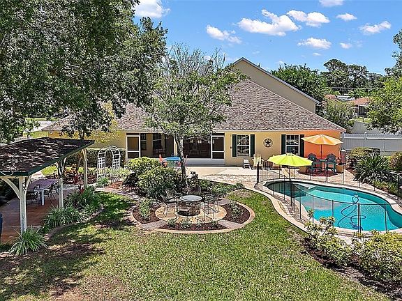 WELCOME to your lovingly maintained family pool home! NEW ROOF in 2022! Great house for anyone needing an abundance of space with four bedrooms and the ability to convert the media room into a fifth bedroom or leave it as an office. The downstairs is a split floor plan that features a den/reading room, formal dining room, open and bright living room with a ventless gas fireplace and custom built in shelving. The kitchen offers lots of cabinet space with a nice sized pantry with plenty of counter space as well as an eat in kitchen bar and breakfast nook/coffee bar area. Private master suite with separate door leading to the screened porch, master bathroom includes walk-in closet, double sinks, built in vanity space, a garden tub as well as a walk-in shower. Stunning wood staircase leads up to a spacious bonus room and bonus loft area with a full third bathroom! Enjoy your inviting backyard that's great for entertaining! Featuring a beautiful in ground pool with a sun shelf, covered gazebo with outdoor kitchen and ability to have wifi tv setup, outdoor gas firepit, an impressive rock waterfall, and a fully landscaped back yard with a variety of flowers, plants, and fruit trees! Enjoy all that this highly sought after area home has to offer! Conveniently located between Mount Dora, Tavares and Eustis. Please call your agent today to request a showing!