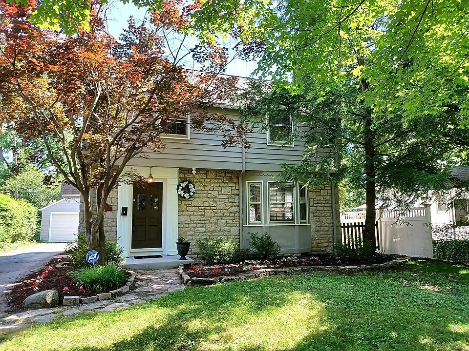 Classic CENTRAL Clintonville home! Stone & wood facade, unique circular pane leaded glass front dr. Rich oak flrg, bay window in LR, wood burning fireplace. Large LR & DR, updated kit. Shaker style cherry finish cabinetry. Breakfast rm w/built in shelving. Mostly neutral interior painting (2024). Screened porch overlooking sunny backyard. 3 large Bedrooms upstairs, excellent closet space. 6-panel doors. Remodeled bath. LL Rec rm/home office space, built in bookcases. Updates include: New dimensional shingle roof (main house/breakfast rm) (2018), New AC (2017). updated kitchen. Walk to parks, library, Whetstone Rec Center, Park of Roses, restaurants, shops. Enjoy the seasonal Farmer's Market on High St, easy access to the Olentangy