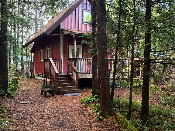 Unique north-end Ketchikan listing offering you TWO residences on one property. End of cul-de-sac on Candle Ct., the log cabin main house offer 3 bedrooms, 2 baths & a loft style primary suite. Large windows throughout let the light in, topped by vaulted ceilings & anchored by a perfectly set woodstove. The open living & entertainment space flows from indoors to out open wrap-around decks,firepits, tree-lined lot lines and open parking. The accessory cabin offers a loft bedroom/1 bath. Stylish furnishings, updated kitchen & on-demand propane hot water. Both residences are set back in private settings yet right down the road from where ALL the fish live at Knudson Cove Marina & Clover Pass Resort.