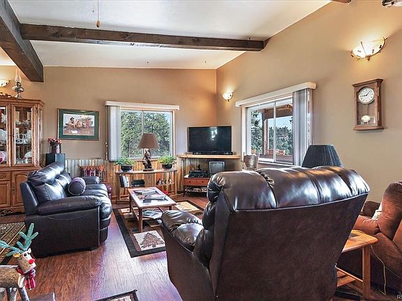 Well Maintained Mountain Raised Ranch on 1.6 aces of Gentle Rolling Land Dotted with Pines! Interior Includes New Hickory Laminate Floors, Carpet, Fresh Paint, Beetle Kill Paneling, Exposed Beams, and a Large Stone Wood Burning Stove Warms the Heart of this Home. 2 Bedrooms and a Bath on Each Level, Plenty of Room for Everyone. Outside you will find Plenty of Space for all your Toys, Inside and Outside RV parking in 30x40 Detached Heated Garage/Shop and More Storage! Domestic well, Fire Mitigated, Asphalt Circular Drive, and Wrap Around Deck make this the Perfect Mountain Home.