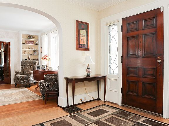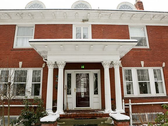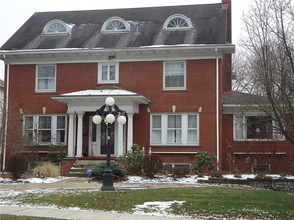 Stunning Colonial Brick home with paved semi drive. The spacious rooms make entertaining a breeze. Full applianced kitchen has original cabinetry, plus an amazing pantry/laundry addition with extra sink and custom cabinetry. Gorgeous entryway and staircase with mahogany doors, hardwood floors, gas FP in living room, 1st fl den w a wet bar. The many built ins add character in keeping with the colonial style of the home. 1st fl part bath, Master suite w dressing room, bath, and private covered porch. 3rd floor completely finished ready for a family room or additional bedrooms. 2 Detached brick garage, fenced yard and additional parking. One of a kind home!