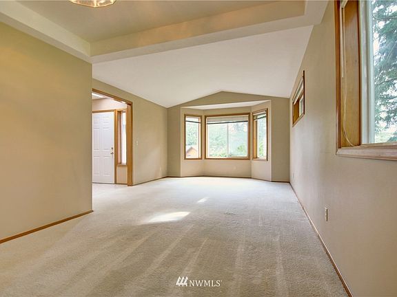 Delightful single level home, in Shelter Bay La Conner. Three bedroom, one and three quarter baths. The primary bedroom has a large walk in closet. Living, dining, and separate family room, features skylights for natural light, Wood stove for warm winters. Utility room with utility sink. Double garage with storage. Shelter Bay amenities, 9 hole golf course, swimming pool, club house, tennis, two private beaches, and marina.
