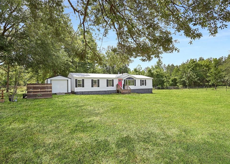 Feeling crowded where you are? If you are looking to escape the hustle and bustle of city life, welcome to your new home or weekend retreat and rental! 11.53 acres has tons of potential to meet any need you may have. This beautiful home is located only 3 miles from the Ichetucknee Springs State Park entrance with no flood zone! The road is paved almost all the way to the property entrance for easy access. Three paddocks are cleared and fenced on the front third of the lot, where the back is left wooded with beautiful walking trails to enjoy nature. Need storage? There are two 12X24 storage sheds, one 12X22 Kennel area on a slab with storage area that could serve as a wonderful chicken coop! Two 26X24 VersaTube steel buildings on slabs that could easily be enclosed for garage space. There is a 50 Amp RV hook up at the South end of the home for traveling visitors. The metal roof provides peace of mind for your investment. Step inside the beautifully remodeled modular home to a cozy atmosphere. Beadboard and batten ceilings give a unique feel that can be warmed by the wood burning fireplace. Soak in the nostalgia from the claw foot bathtub located in the suite off the primary bedroom. A split floorplan for the second and third bedroom and guest bath allow for plenty of privacy. Come take a look at a new lifestyle in the country 8 miles from Fort White and another 10 miles to Historic High Springs!