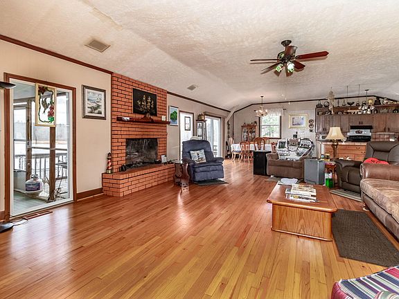 WATERFRONT LOT - Wonderful large family home has 2616 square feet of living space and is adjacent to a 43-acre pond with a large dock. Has a 25x50 open great room with 12-foot ceilings, gas fireplace, hardwood floors. The kitchen area is featuring a large supply of built-in cabinetry and ceramic countertops, and all appliances. Dining room area has large sliding doors overlooking the pond. Master bedroom has double glass door overlooking the pond and opens onto its own private small deck. Three other large bedrooms. Exterior of home is vinyl siding. Also features a back deck that extends 50 feet across the back of home and partly screened.