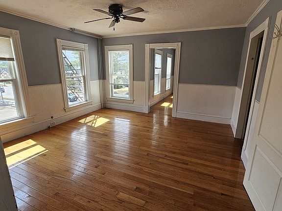 Recently updated, new kitchen, hardwood floors. This apartment is light, & bright, with lots of large windows, in an old New England building, centrally located with restaurants and conveniences within walking distance. Just a few hundred feet from Laconia High School, this location is convenient for families. There is off-street (parking lot) parking for two vehicles and snow plowing is included. This apartment is located on the second and third floors, with a claw-foot tub on the main floor and a jacuzzi tub in the master bedroom. There are plenty of closets, and the master has a large walk-in clost with a desk system that can be used as a small office. The kitchen was recently replaced: New cabinets with all butcher-block counter tops and newer appliances. The pantry is right in the kitchen for food storage. There is a washer-dryer hookup for a small additional water/sewer consumption fee. Private entrance plus additional shared egress.