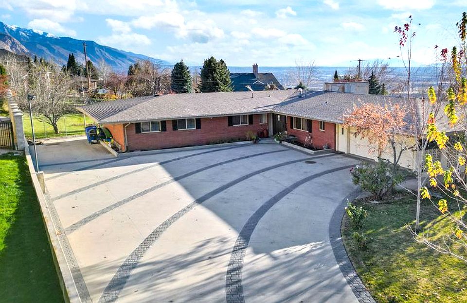 Welcome to an exceptional Mid Century Modern Ranch style Home with California and Frank Lloyd Write and Modern Prairie style Influences...The brick rambler in Pleasant View, Utah, where timeless architecture meets thoughtful modern upgrades and breathtaking panoramic scenery. 7 bedrooms and 4 bathrooms. Two Driveways with 4 Garages total, a ton of parking! With Panoramic Views on a HUGE .61 Acre lot! Perched on the foothills of Ben Lomond, this spacious home captures sweeping views of the mountains, city lights, and the Great Salt Lake-delivering unforgettable sunsets and a lifestyle at the edge of Utah's most iconic outdoor destinations. Inside, the home feels fresh and inviting with brand-new LVP/SPC flooring on both levels and crisp new paint throughout. The generous layout includes built-ins, abundant storage, and a kitchen filled with cupboards and workspace. A full walkout basement with floor-to-ceiling windows opens directly to the large beautiful backyard. Outside, enjoy a private oasis featuring a stunning double waterfall and pond, massive deck and patio spaces, and a fully fenced yard ideal for relaxing and entertaining. The property is a dream for gardeners, with four varieties of apple trees, a grape arbor, a large garden plot, and raised beds with a micro-irrigation system on a timer. Upper and lower driveways, two oversized garages, and extensive parking is perfectly suited for RVs, boats, trailers, side-by-sides, and all your Utah adventure toys. And with unmatched access to recreation, the location couldn't be better-you're minutes from I-15, Willard Bay, Nordic Valley, Snowbasin, and Pineview Reservoir. Access the Bonneville Shoreline Trailhead is just a few minutes walk up through the neighborhood. Don't miss this rare opportunity to own one of Pleasant View's best homes for sale, offering extraordinary views and true northern Utah living.