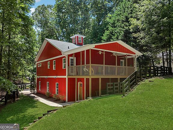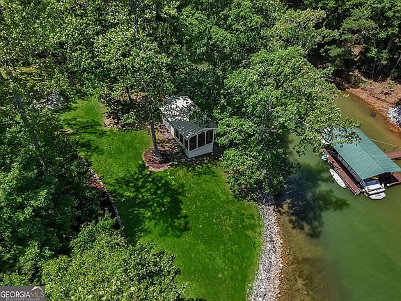 First time on market for this two parcel lake front opportunity! This is a once in a lifetime Lake escape sitting on nearly 2.5 flat and gated acres on the south end of Young deer point, with big water views of Lake Lanier. The property features two docks; a 16x16 Platform and a 32x32 custom double slip, two story party dock, with like new Polly Lift Boat Lift and two ride up Jet Ski lifts, as well as new electric wiring and panel boxes. The purchase includes two separate lots. LOT 1 includes a 3500 sq ft custom designed and built, barn styled farmhouse, Board and Batten siding, new architectural shingle roof, new Andersen windows, a large deck, 1500 sq ft 3 car garage with sprinkler system, epoxy floor and a cleared space outside for an additional barn/workshop. Upon entry you find a large media room with its own full bathroom and garage access, that could double as a guest suite. A grand staircase leads you to the second level that features an abundance of natural light, open floor plan with an L shaped kitchen and stone counters, living room, and a separate dining nook. The second level also boasts the inviting master suite and an additional bedroom and full bathroom. On the third level you discover the two bed loft over looking the cozy family room. Additional interior features all 8 ft doors, full alarm system, hardwood floors, and beautifully detailed crown molding. LOT 2 has been cleared for a custom build opportunity with Power and Water in place for future home or camper/RV hook up. LOT 2 Features also include grandfathered in gravel drive to Lake, mow permit, sprinkler system at grass at shoreline. Also, there is an ADORABLE Picnic House at Waters edge with water, electric, screened in porch and tin roof to enjoy reading a book or listening to the rain as well as a custom fire pit. Property is turn key and ready for you to make whatever your dreams may desire whether it be for personal enjoyment or events and weddings. This property has been loved for over 20 years.. must see to appreciate. This opportunity won't last long . Bring your boats and skis . This is the one.